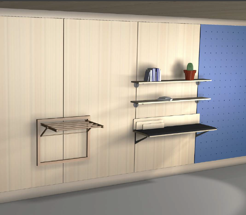Permet de fixer une trentaine d’accessoires entre les panneaux de finition intérieure : décoration, rangement, équipement sportif, etc…