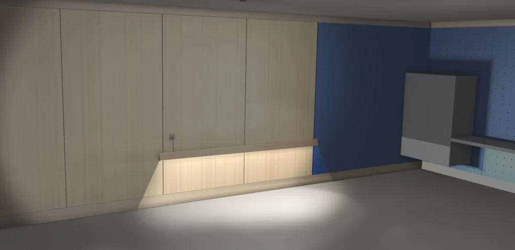 > Un système innovant et pratique de façon régulière au plafond et sur les murs.