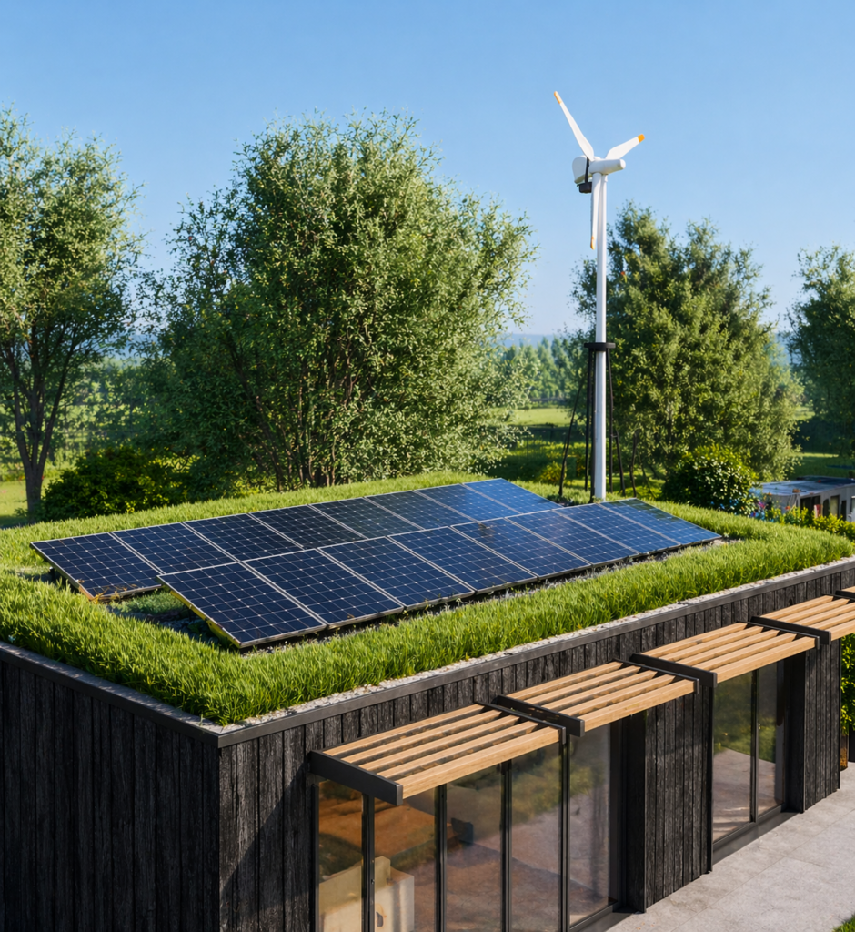 Avec notre concept de maison en isolation bois-paille, nous proposons en option un système de production d’énergie pensé pour rendre chaque foyer autonome et indépendant. L’objectif est simple : ne plus subir les hausses des prix de l’énergie et reprendre le contrôle sur sa consommation. Grâce à l’intégration d’une éolienne domestique et de solutions complémentaires comme les panneaux solaires, votre maison produit directement l’énergie dont elle a besoin au quotidien.