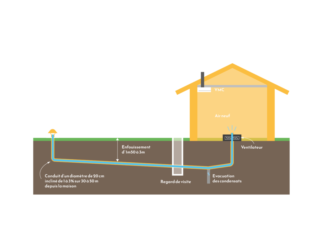 Cette technologie repose sur la géothermie de surface qui est une ressource renouvelable et inépuisable. Cette technologie propre et gratuite repose sur l’exploitation de la température stable du sol. En utilisant cette chaleur naturelle, le système permet de préchauffer l’air en hiver et de le rafraîchir en été, sans avoir recours à une énergie fossile ou à une climatisation énergivore.
